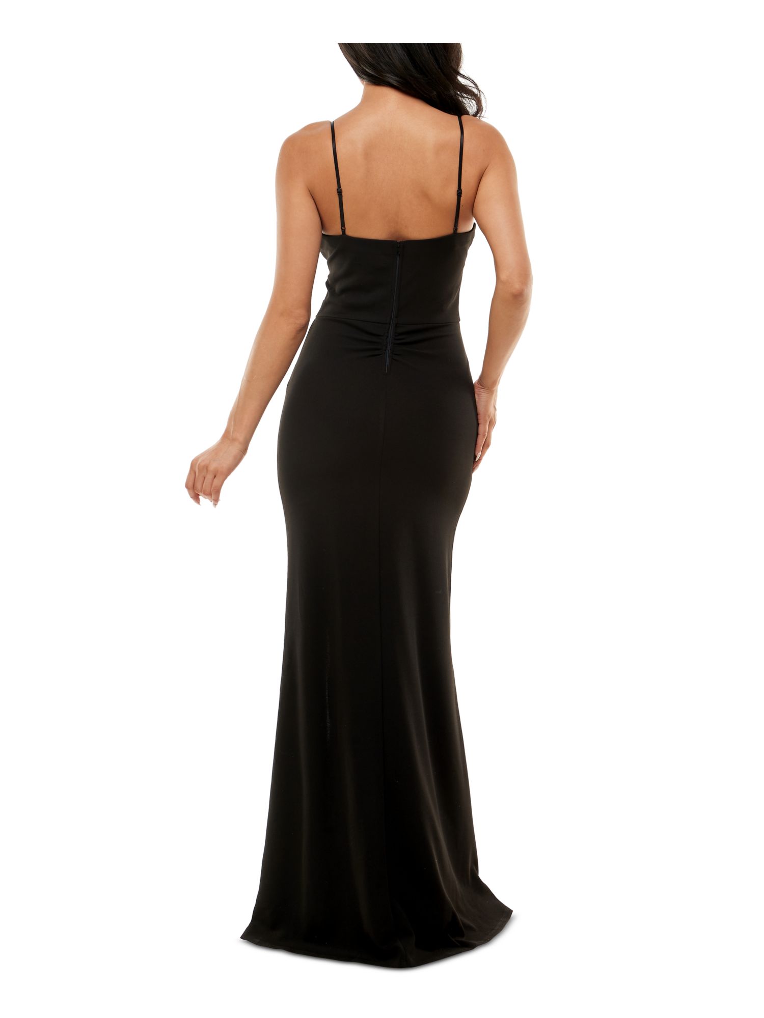 Emerald Sundae Womens Black Zippered Ruched Corset Bodice Sheer Waist Slit Spaghetti Strap Sweetheart Neckline Full Length Formal Gown Dress Juniors L Walmart Com